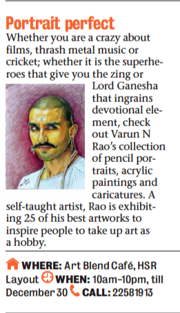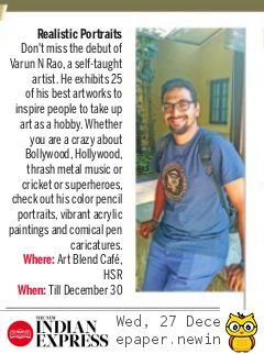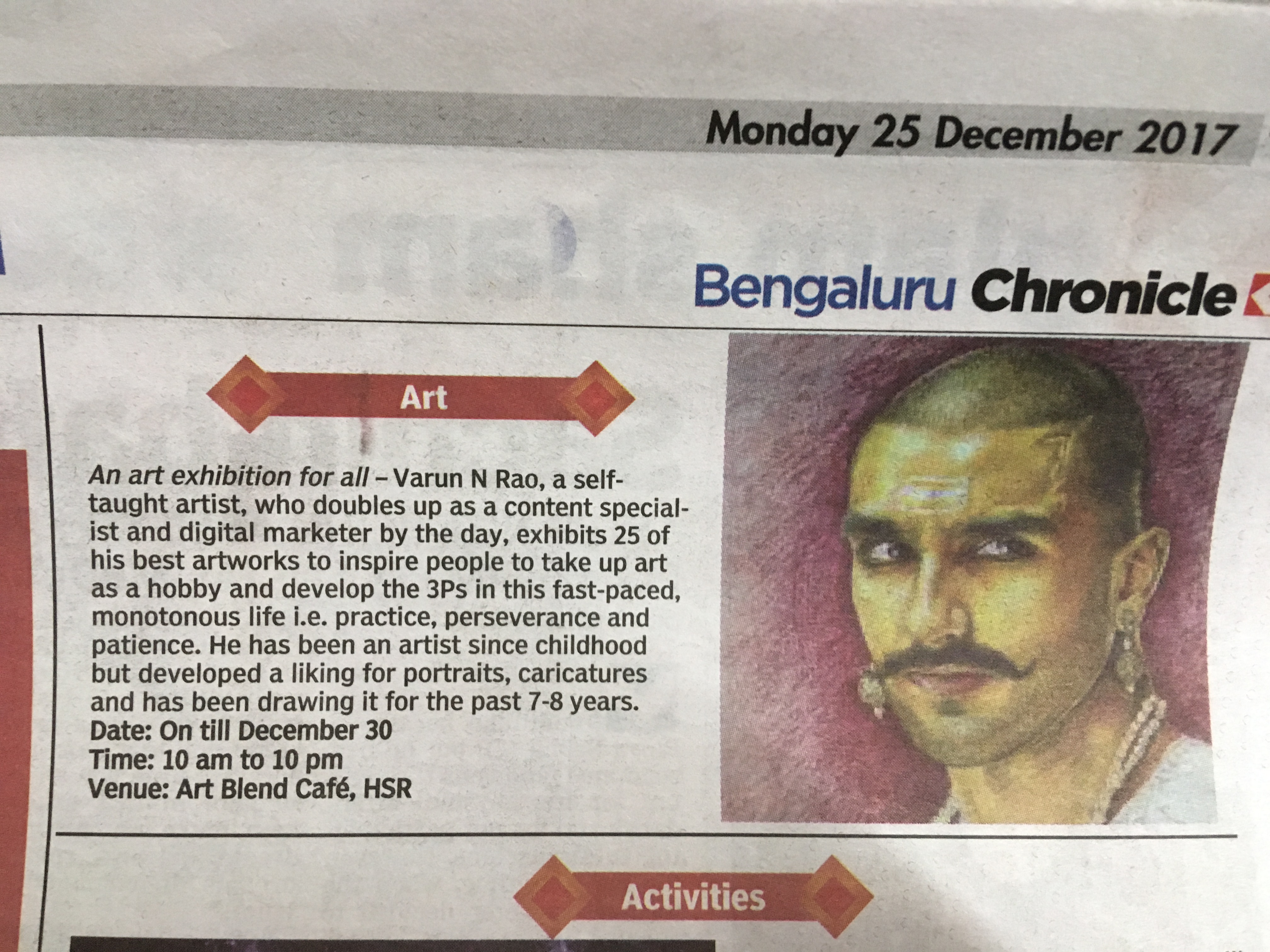 18th December in Bangalore Mirror19th December in Bangalore Mirror21st December in New Indian Express22 December, in Deccan Herald22nd December in Bangalore Times22nd December, in Mint24th December in Bangalore Mirror25th December in Bangalore Mirror25th December in The Deccan Chronicle26th December in Deccan Chronicle26th December in The New Indian Express27th December in New Indian Express27th December in Deccan Chronicle27th December in New Indian Express30th December in Bangalore Times2nd January 2018 in Bangalore Times2nd January 2018 in The Economic Times3RD January 2018 in The New Indian Express5th Jan in Bangalore Times5th Jan in Bangalore Mirror8th Jan in New Indian Express12th Jan in Bangalore Times
