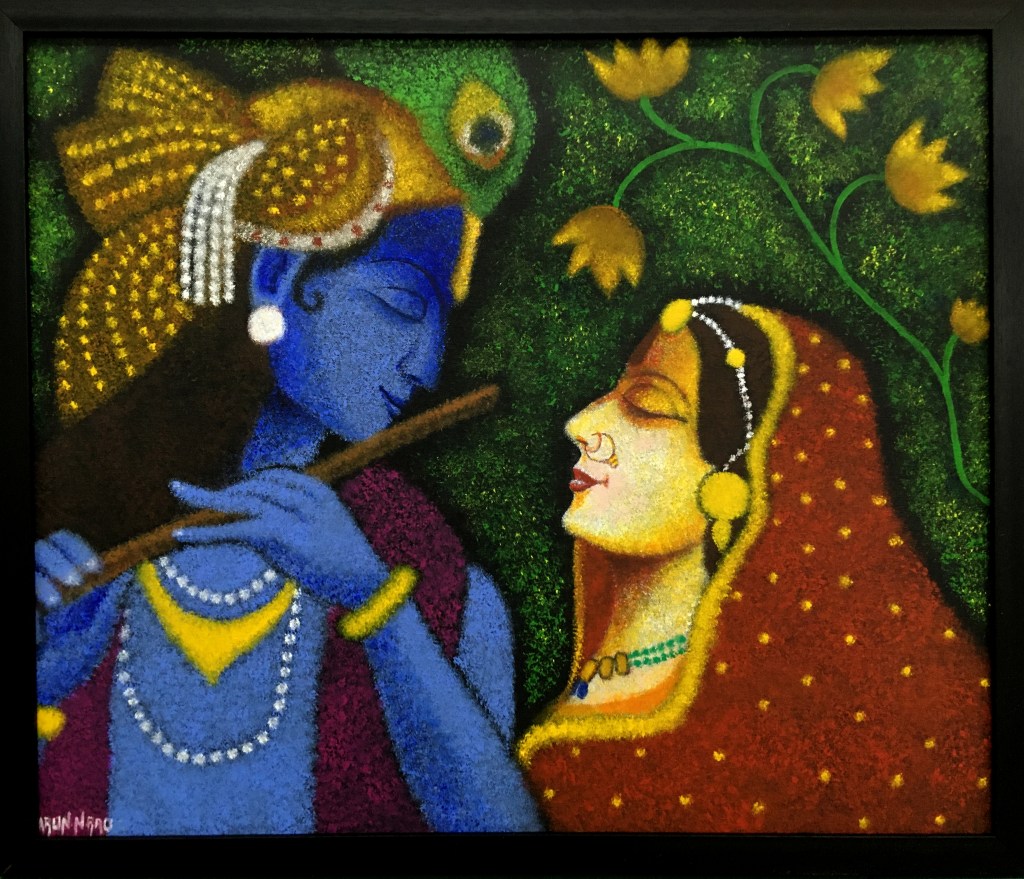 There are so many paintings about Radha and Krishna that I wasn’t inclined towards painting them at one point of time. My family pushed me to make one but still I wanted to create one in my own style.