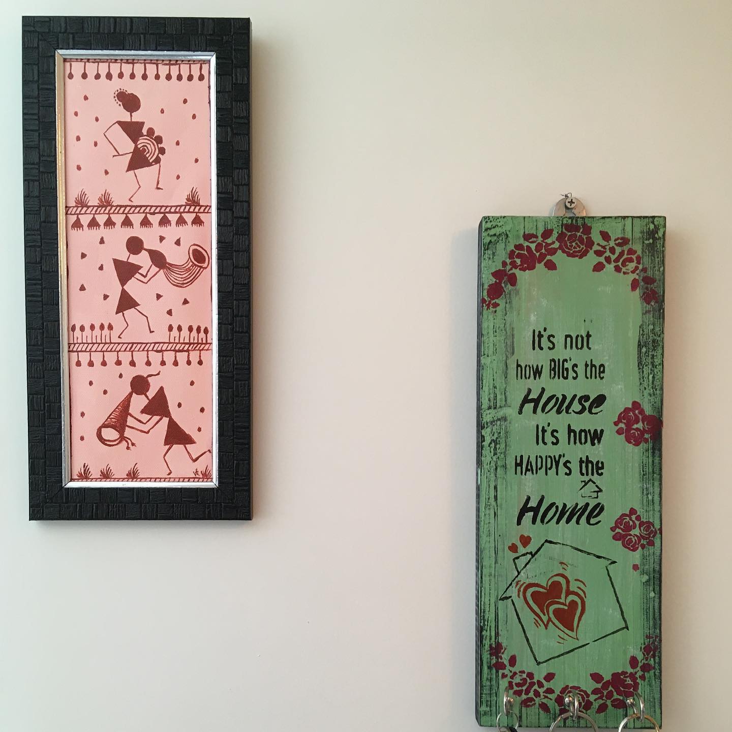 @camlin_official acrylic paints on 4.5β by 12β canvas. Framed and hanged along with @anugyasinha5 wooden key holder artwork ππ