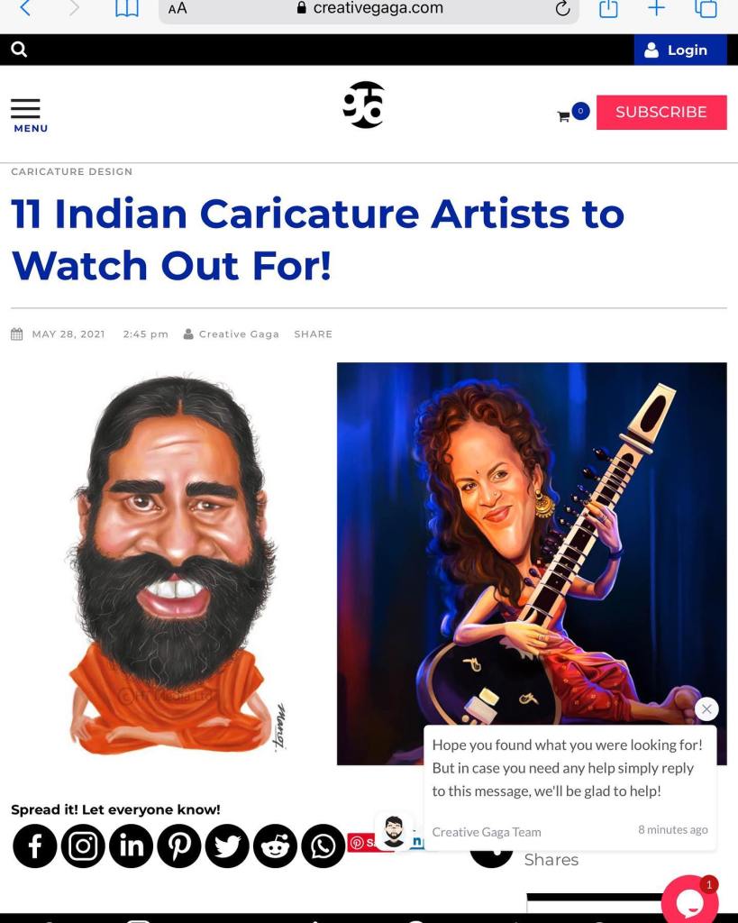 Thrilled to share that @creative_gaga mag featured me as 1 of the 11 #rising #caricature #artists of #india 😍😍😍