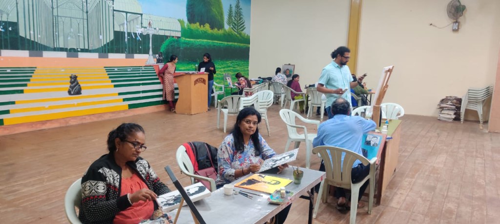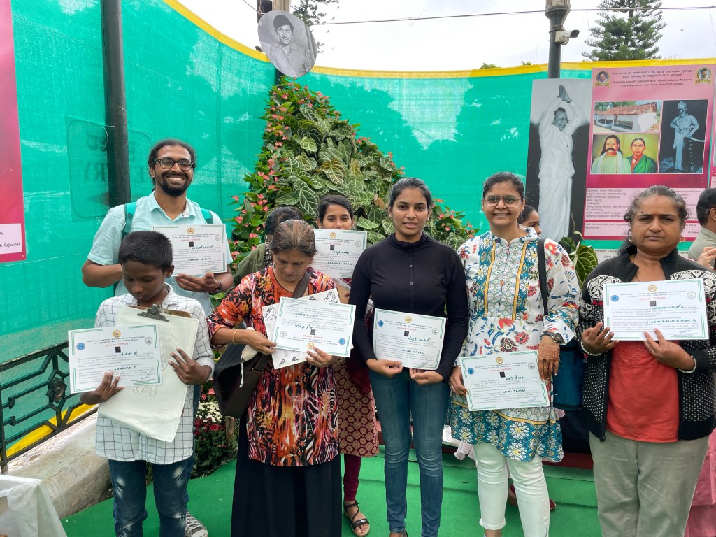 I had an opportunity to participate in an art competition organised by the Department of Horticulture, Government of Karnataka and Mysore Horticultural Society as a part of 212th flower show which commenced today at Lalbagh Botanical Gardens.