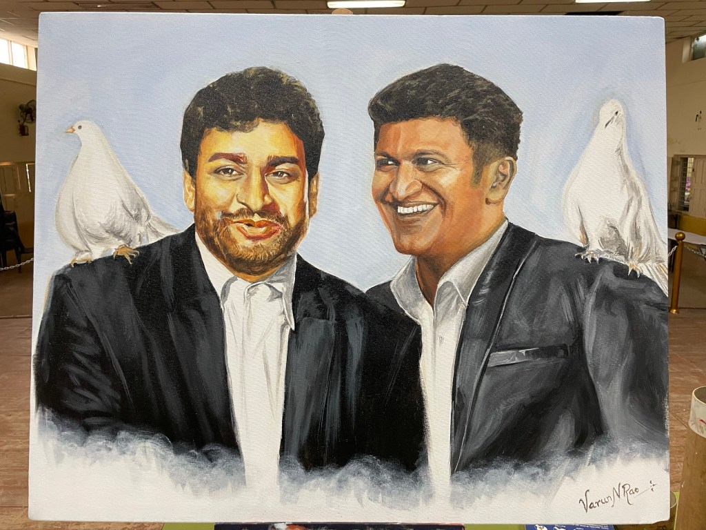 I received the FIRST PRIZE for my portraits of Late Dr. Rajkumar and Late @puneethrajkumar.official . The painting will be displayed at Lalbagh till 15th August.