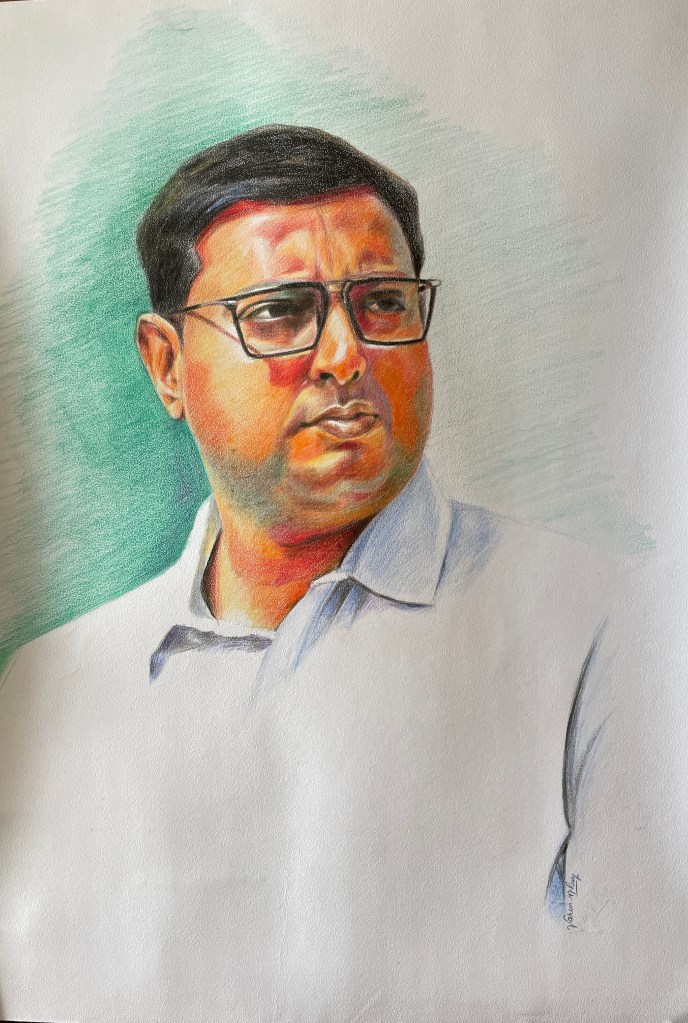 Faber Castell Polychromous Pencils on 16 inch by 20 inch leather-textured paper.