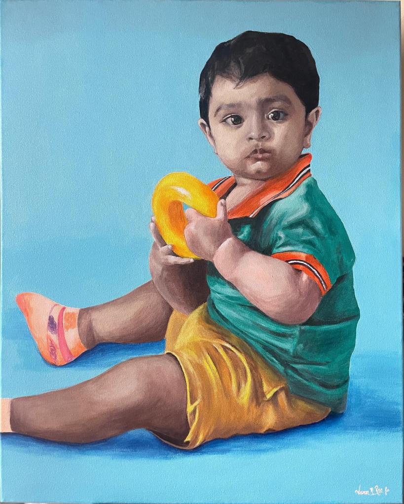 A portrait of my nephew, Vishakh. I started working on this portrait in June end and almost completed the entire work before my eye surgery. However, I realised that the face didn’t come out as I wanted. Then came a big break in the form of festivals that kept me busy. Coming out of the festivities, I gathered the courage to redo the entire face portion and finally finished it yesterday. The reference photo for this image was clicked by my brother @kiran.n.rao exactly a year ago on this date. ![]()