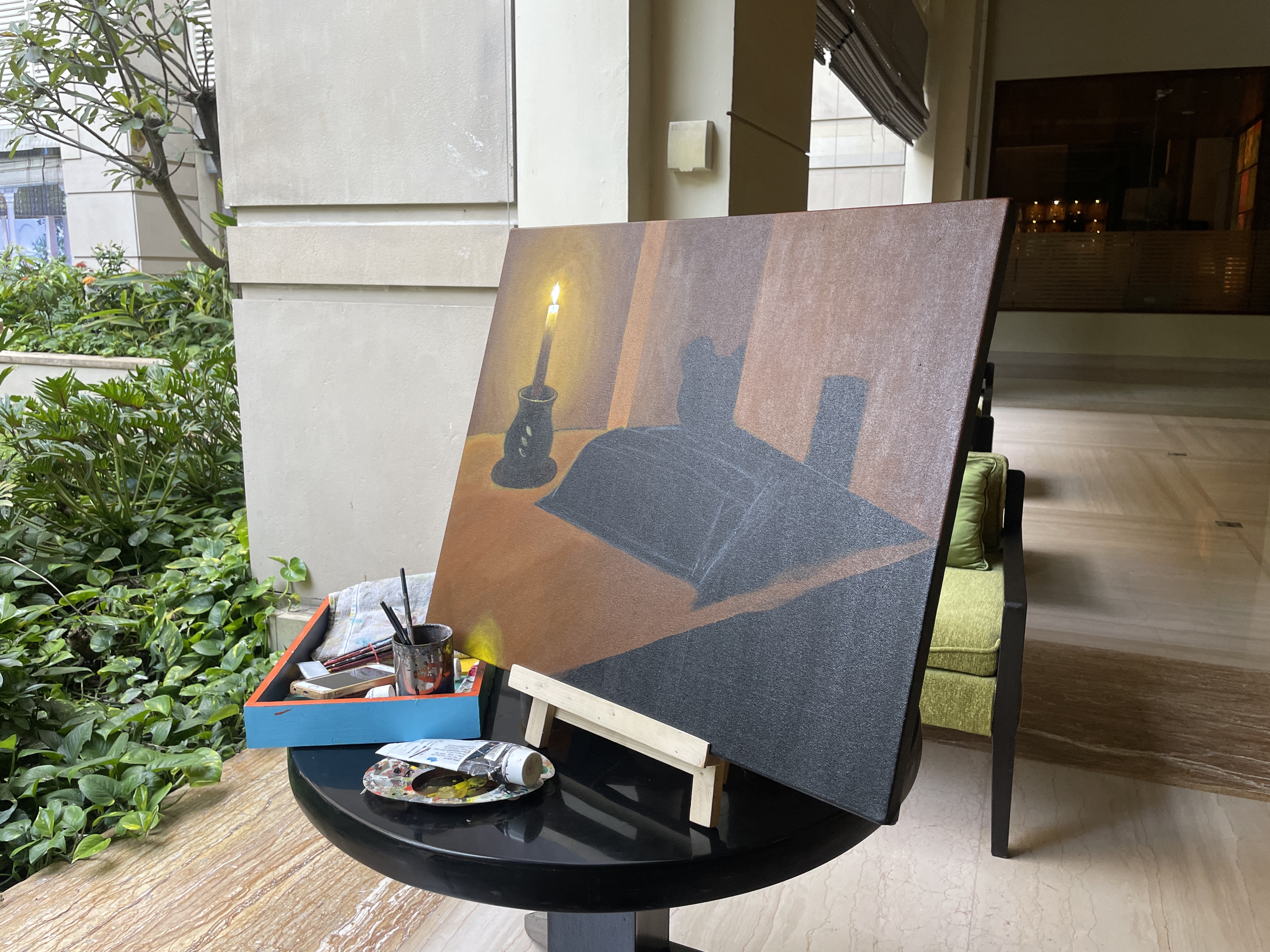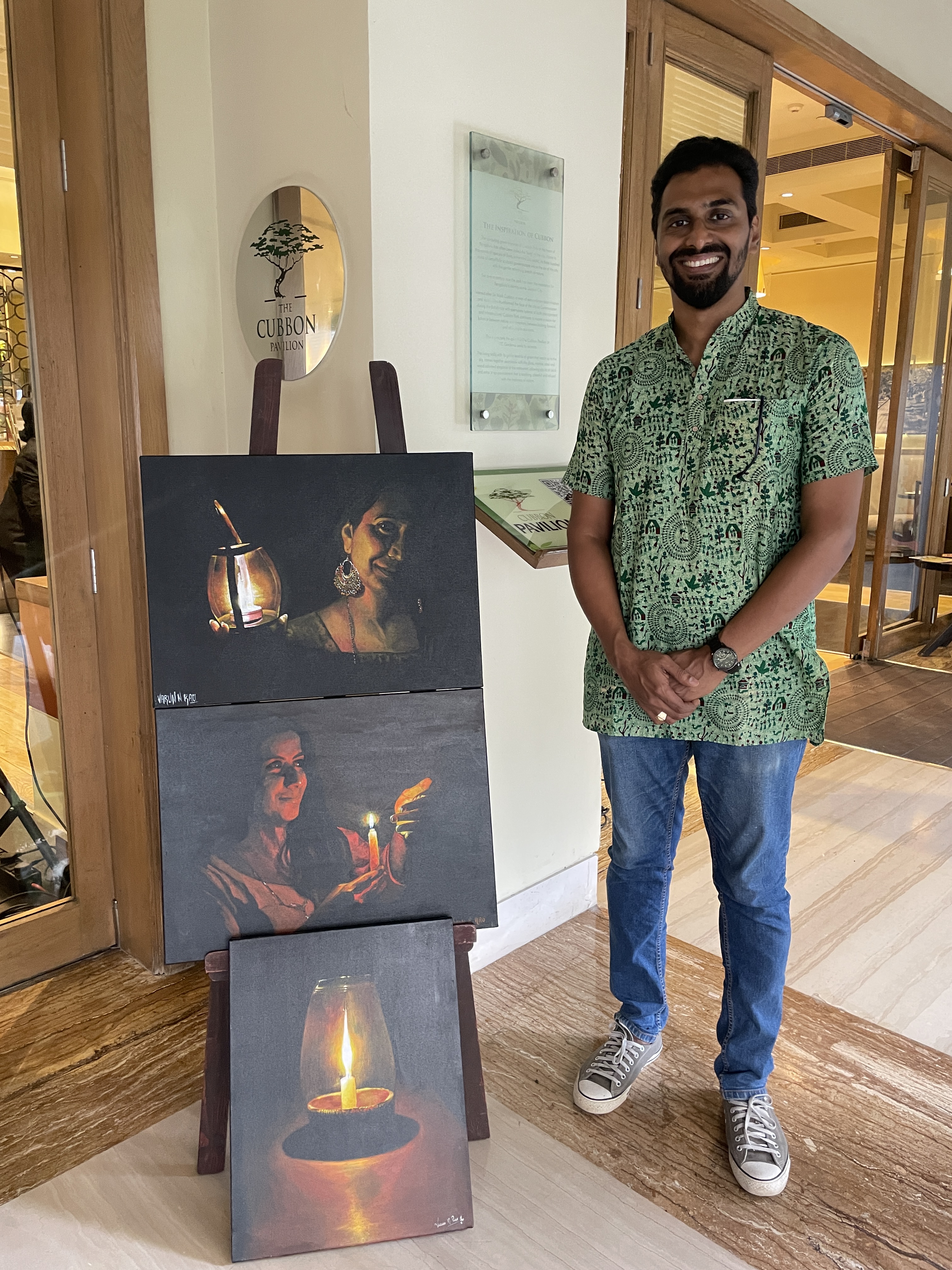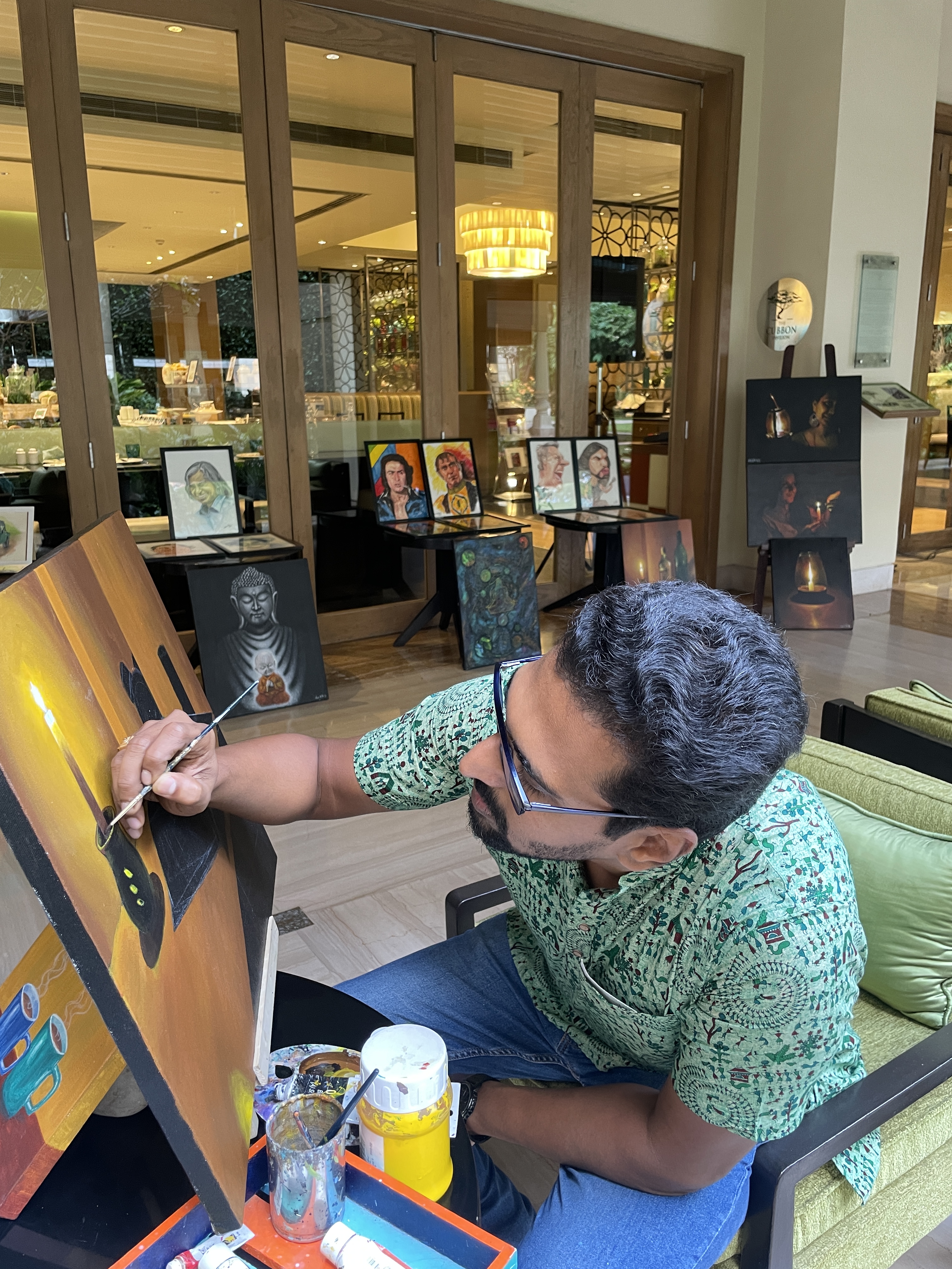 It was a wonderful experience to do live painting and exhibit my paintings at @itcgardenia It was a beautiful coincidence that on the eve of Teacher’s Day, I was working on a painting that focused on books and reading as a theme. 📚📚