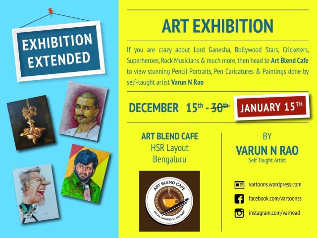I am exhibiting 25 of my best artworks to inspire people to take up art as a hobby and develop the 3Ps in this fast-paced, monotonous life i.e. Practice, Perseverance and Patience. I have been an artist since childhood but developed a liking for portraits, caricatures and have been drawing it for the past 7-8 years.
